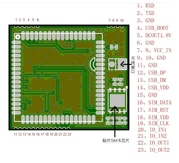 4.? 自帶貼片SIM卡,同時也支持用戶板上設(shè)計SIM卡座;
